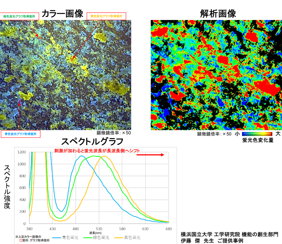 引っ張ると蛍光色が変化する高分子材料の評価
